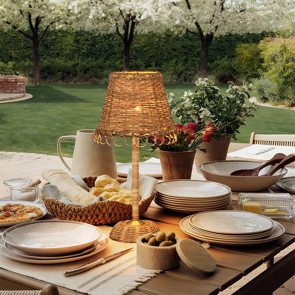 مصباح طاولة قابل لإعادة الشحن ، مصباح ليد من الخيزران ، ريفي حديث للمنزل ، بطارية OEM ratan 80 مستدير من نوع c E14